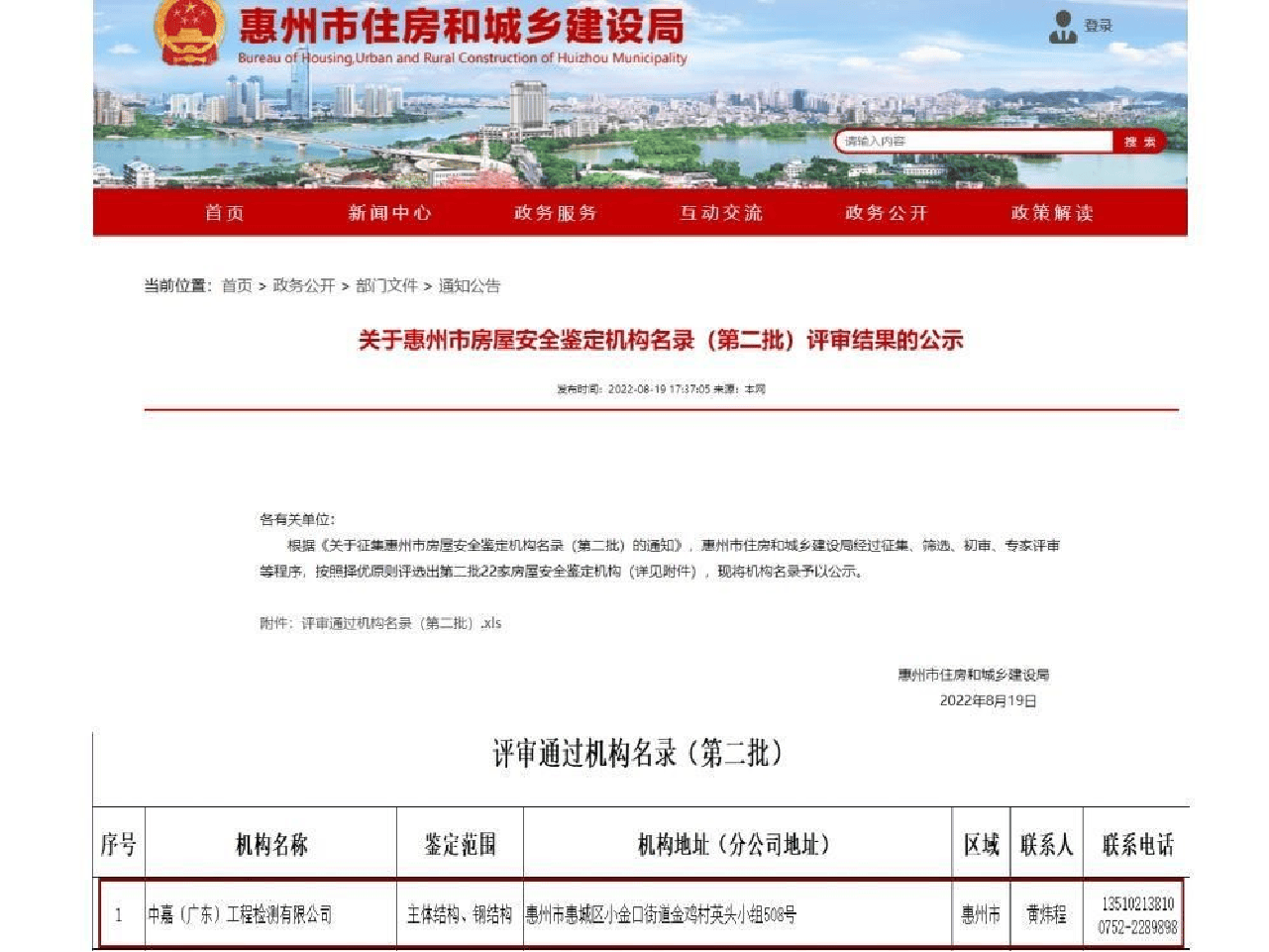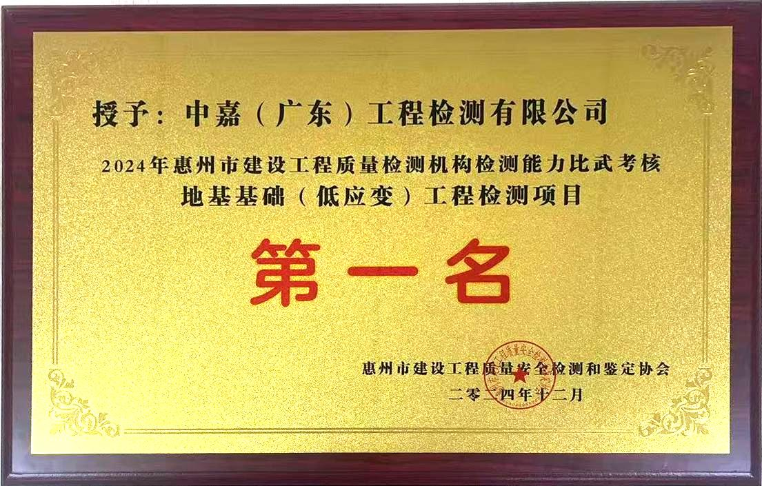 在惠州市檢測機構(gòu)比武考核中獲地基基礎(chǔ)檢測第一名
