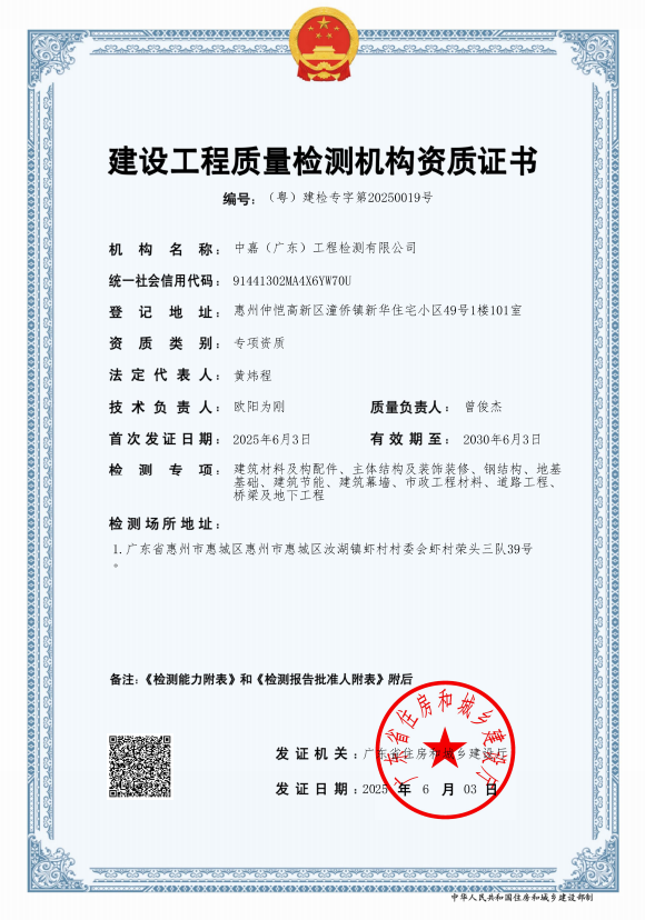 被廣東省建設(shè)工程質(zhì)量安全檢測和鑒定協(xié)會評為雙A信用等級