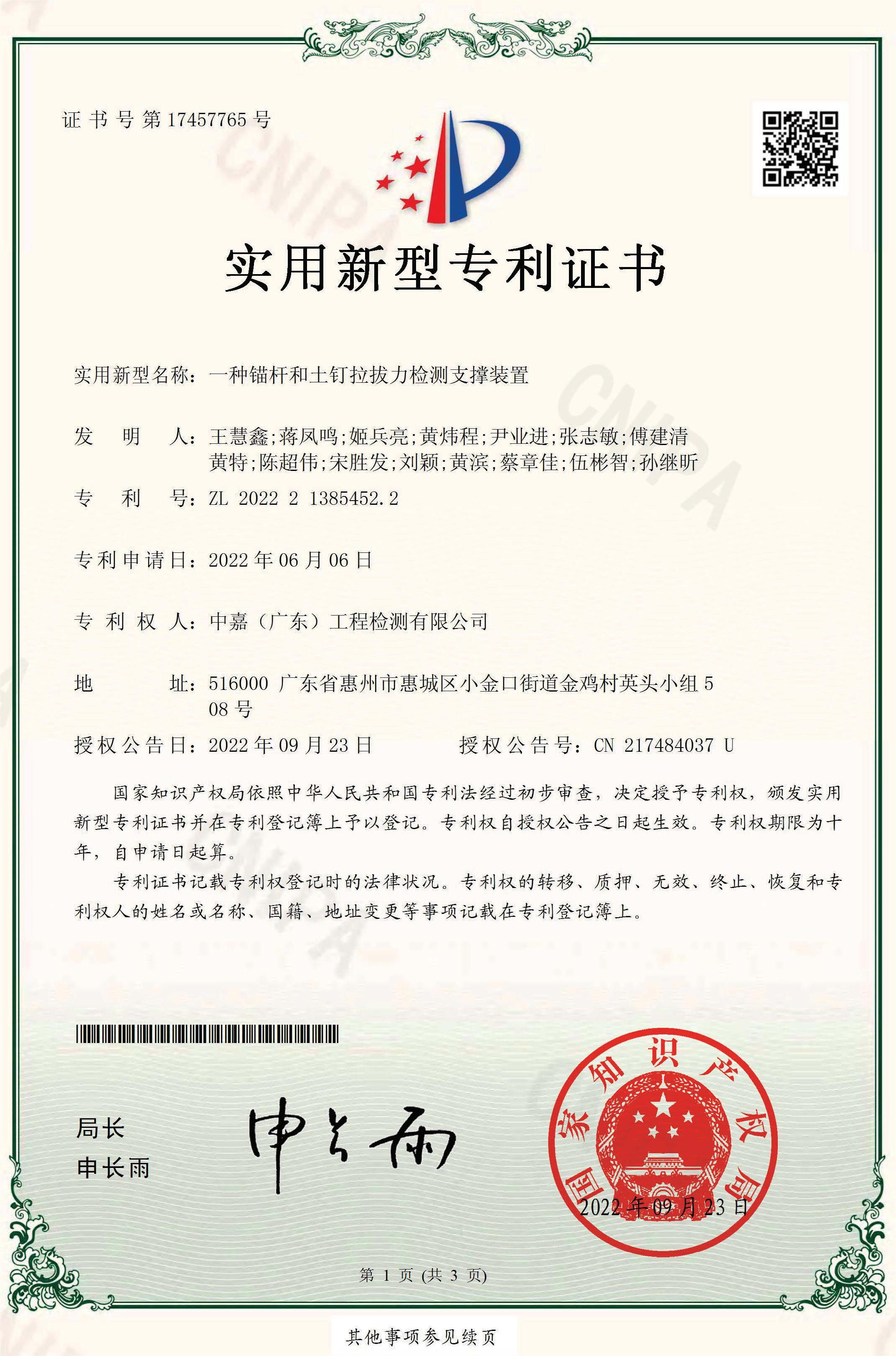 專利證書