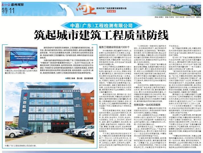 喜報!中嘉檢測榮登南方日報—筑起城市建筑工程質量防線